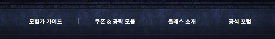 ㆍ퀵 메뉴 : 모험가 가이드, 쿠폰&공략 모음, 클래스 소개, 공식 포럼