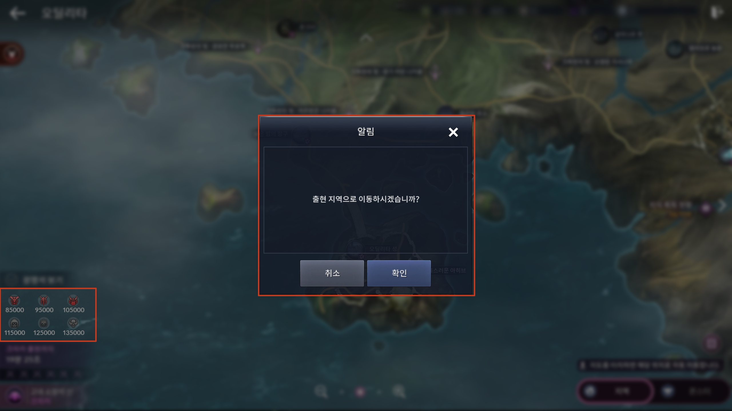 - 월드맵 왼쪽 하단의 우두머리 아이콘을 터치하여 우두머리 위치로 자동 이동할 수 있습니다.
