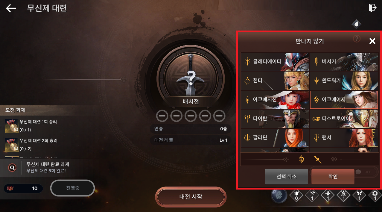 ㆍ전투력 5,000 ~ 55,000 이상까지 1,000 단위로 구분 |