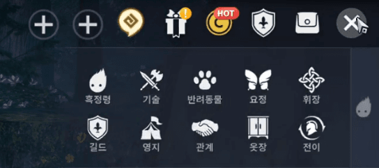 칼페온 연회에서 소개해 드렸던 흑정령 메뉴, 가방, 강화 화면 개선도