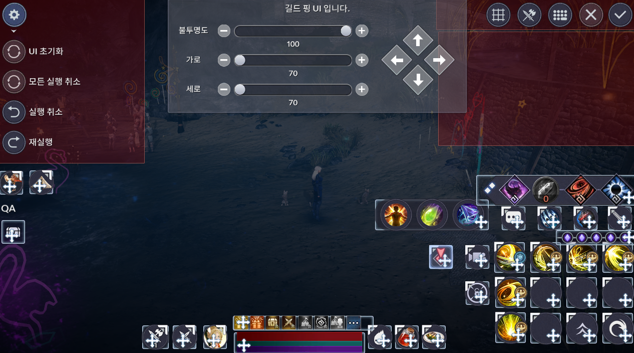 - 리마스터 UI 적용 후 [메뉴 > UI 편집모드]에서 원하는 위치 및 크기로 UI를 설정할 수 있습니다.