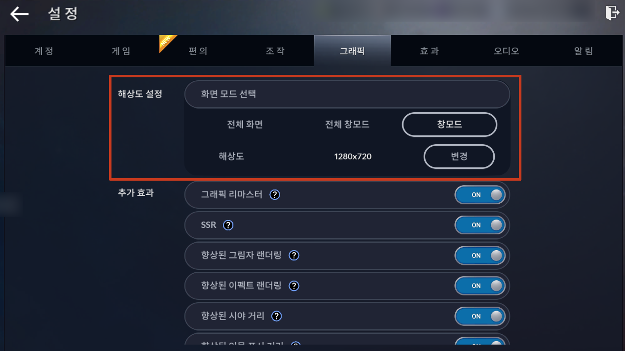 - [설정 > 그래픽 > 추가 효과]에서 그래픽 리마스터를 설정할 수 있습니다.