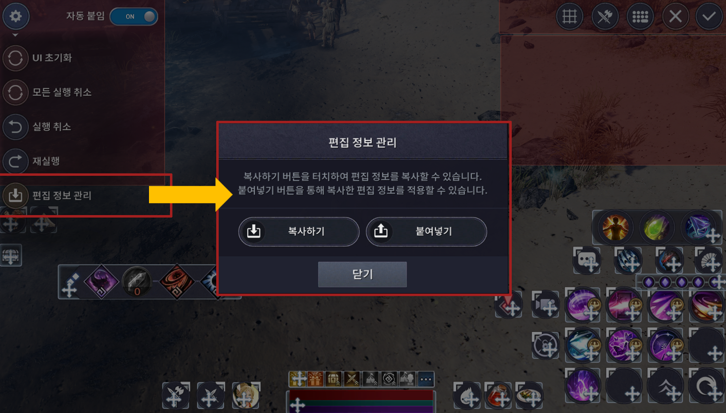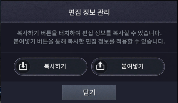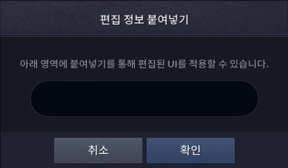 ※ 나의 코드를 다른 모험가에게 공유하거나, 다른 모험가님의 코드를 붙여넣어 리마스터 UI 편집 정보를 가져올 수 있습니다.