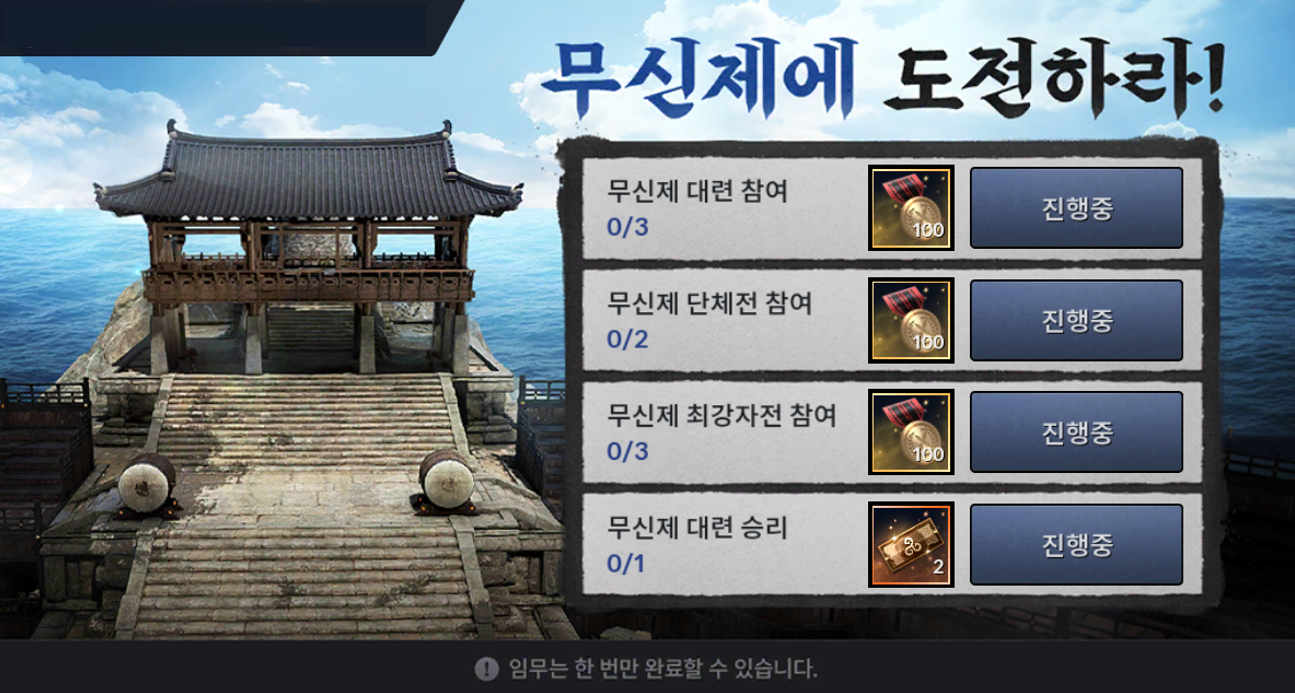 이벤트 내용 : 다른 모험가와 진검 승부! 무신제에 도전하고 명예 훈장, 검은 사당 입장권을 획득해보세요!