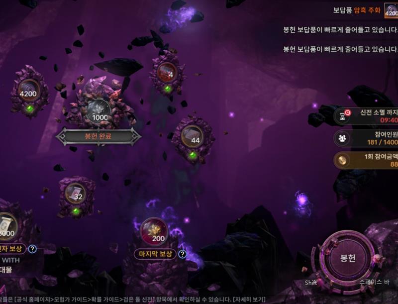 유저들 전체적으로 주화가 많이 부족해 검돌열린지 10분이 지나도 참여인원이 200명도 안되었습니다