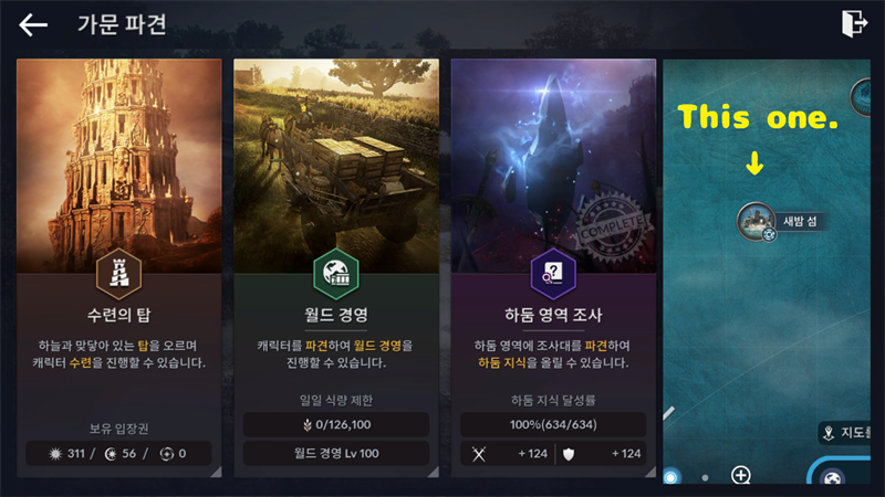 "Automatically move to an available hunting spot(가능한 사냥터)" button