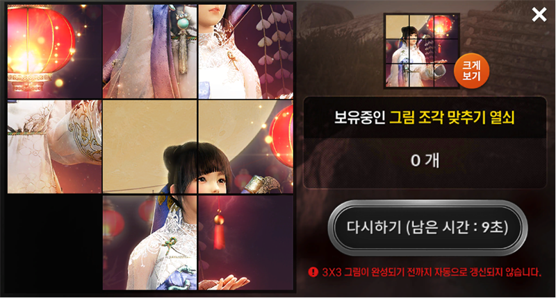 예를 들면 예전 이벤트인 그림 조각맞추기도 좋아요.(플레이 횟수 제한없이 만들어주세요. 심심할 때 들어와서 할 수 있게..)