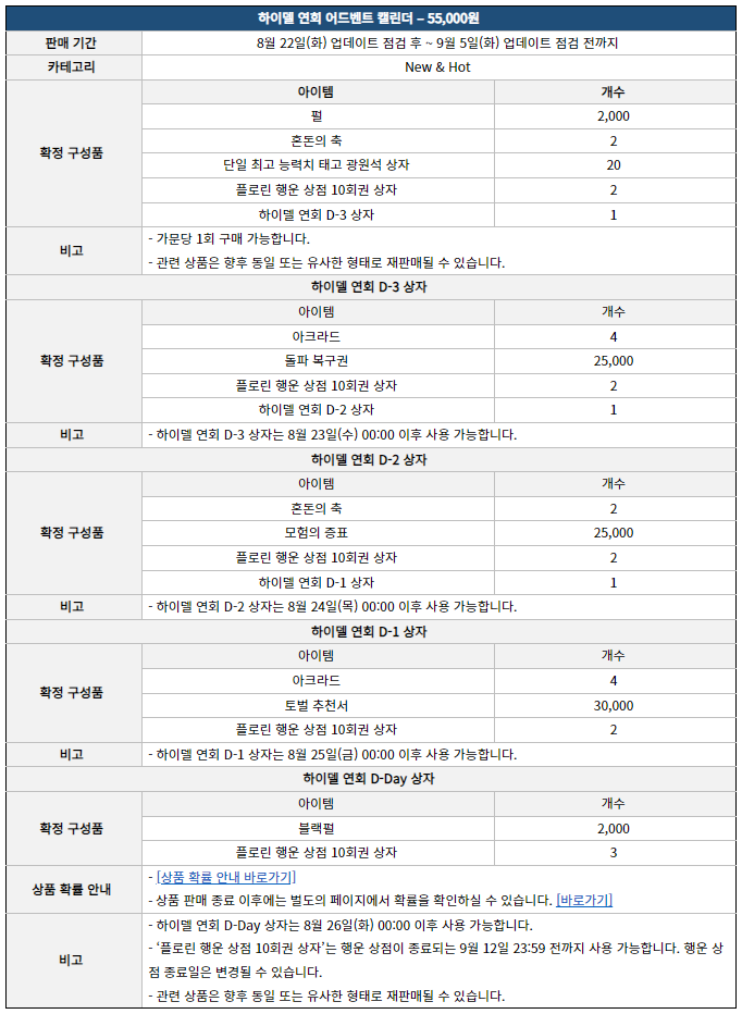 인게임에는 8월 5주차 업데이트 점검시까지라고 되어 있는데...