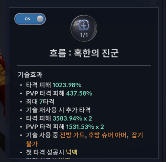 흐름을 켜고 자동전투를 할 시, 흐름효과는 거의 사용하지않고 흐름효과의 재사용 시 추가타격은 자동전투로 사용하는 걸 본 적도 없음