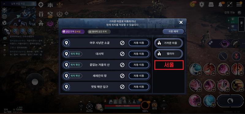 대사막 [히스트리아 석실 내부]와 [남포 무들 마을]에서 (가까운 마을) 버튼을 눌렀을 때 기능이 뭔가 조금 이상하다고 느껴서 이전에 건의드렸던 내용 포럼 링크 첨가 하겠습니다.