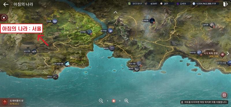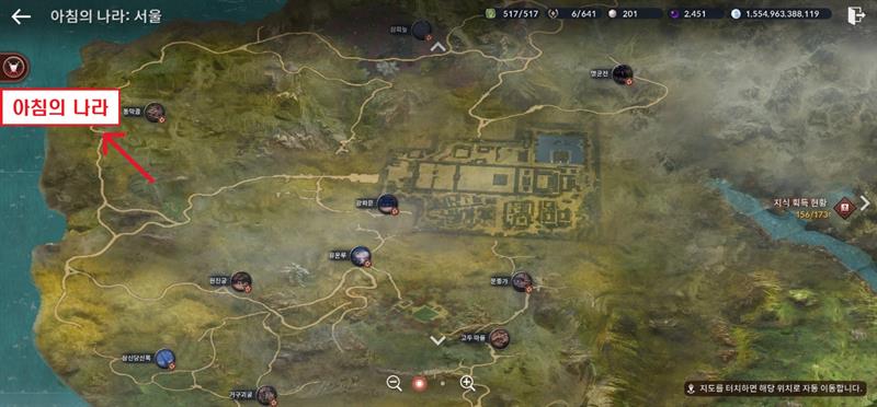[아침의 나라 : 서울]의 설화를 진행하면서 느낀게 서울 맵을 열 수 있는 기능이 부족하더라고요.