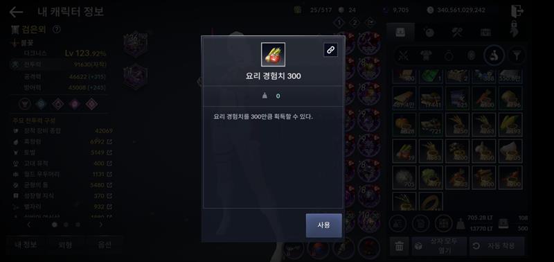 요리 경험치 판매 또는 삭제 가능하도록 변경 요청