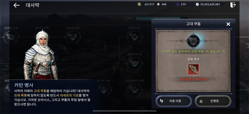 첫번째 사진의 대사막 퀘스트가 완료가 되지 않습니다ㅠㅠ