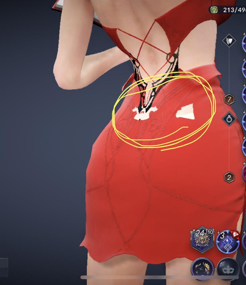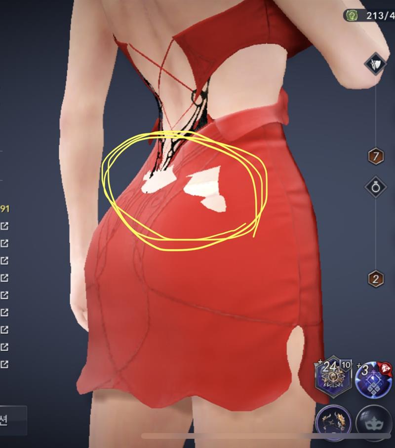 사진과 같이 해당 부위의 속이 드러나는 그래픽 오류가 있는것 같아요