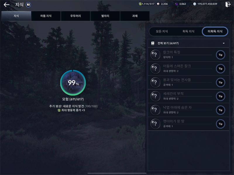 현재 일부 지식의 보상이 뒤바뀌어있는 상태이며, 스크린샷에 나와있는 지식은 아래 의뢰를 통해 획득하실 수 있습니다.