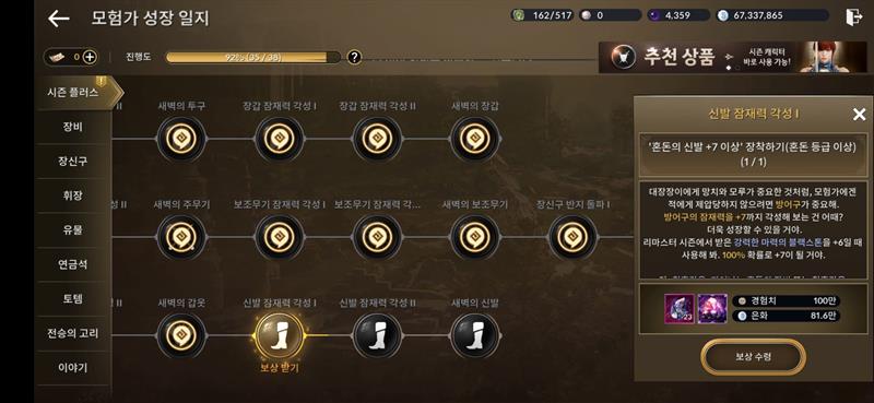 성장일지 시즌플러스 보상수령 버그