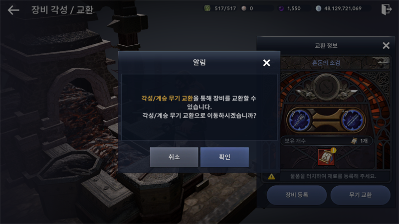 캐릭터 계승무기교환으로 하라고되어있는데 이미 나는 쿠노이치라서