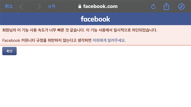 아이폰8 에서만 페이스북 로그인이 안되어 재접속을 몇번 했는데 페이스북에서 로그인을 일시 차단됐습니다