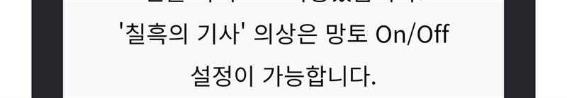 칠흑의 기사 망토 on off 메뉴가 노출이 안되고
