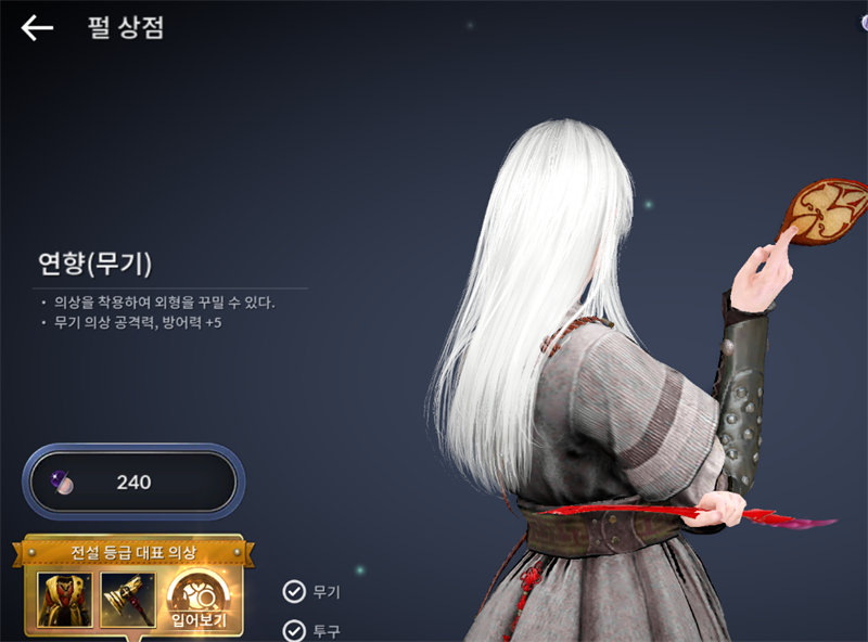 상점에서 외형을 보고 240펄에 무기외형을 구매했는데 노출이 안되니 이상합니다.