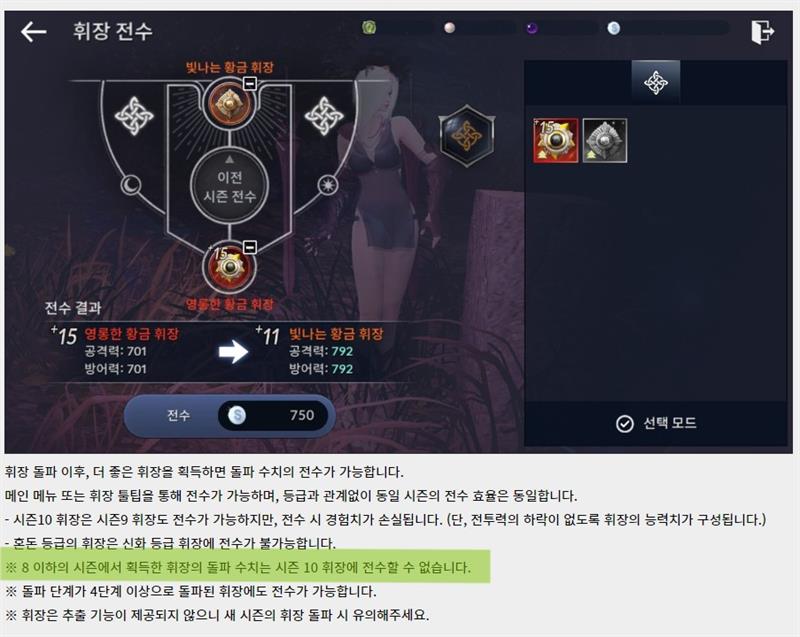 지난 시즌 휘장 전수 혹은 분해 가능하게 될까요???