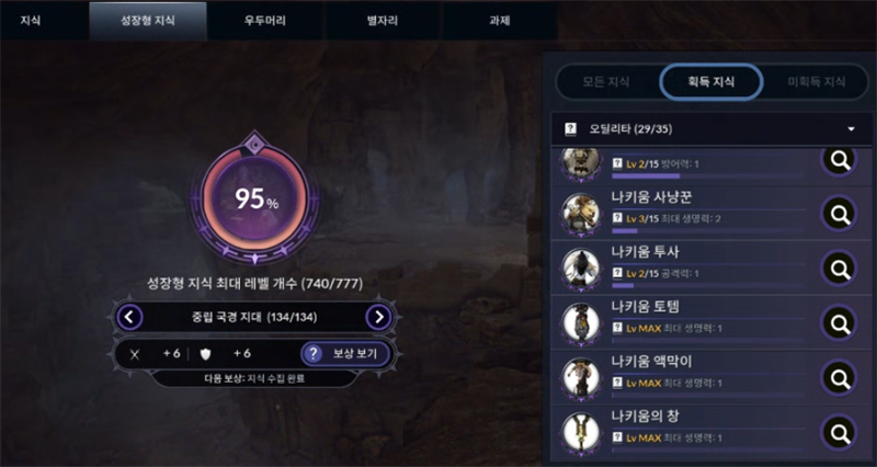따로 성장형 지식 들어가서~ 지역 지식 눌러서 확인 해야 하는 번거로움이 있습니다. 개선되었으면 좋겠어요.
