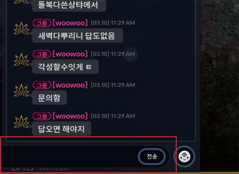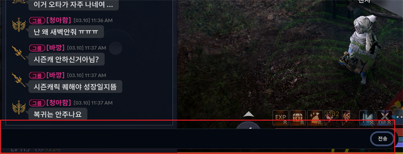 현재 기본 채팅 창 폭 보다 넓어지지 않는데도 왼쪽 가로로 확대되어 입력한 채팅 확인이 불가합니다.