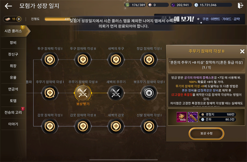 보상 수령이 안눌러집니다