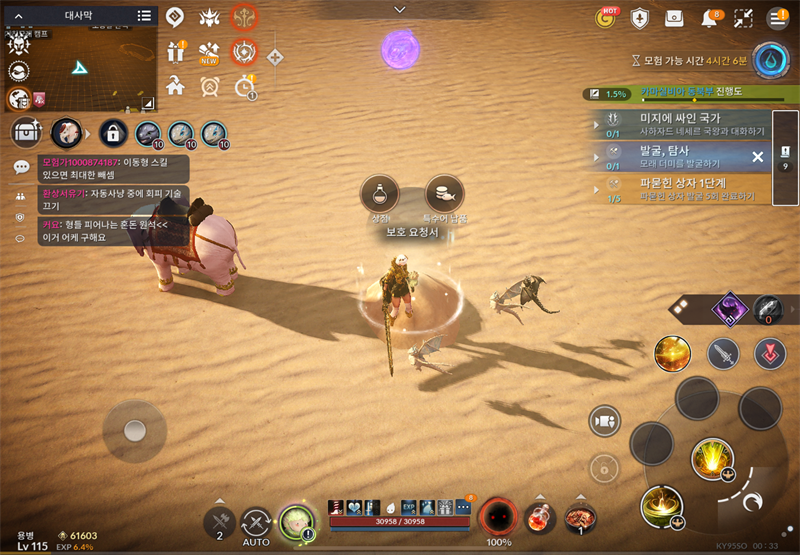 대사막 이야기 퀘스트 깰 때 모래발굴 1회