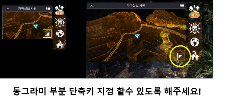 3. 왼쪽 상단 미니맵 에서 무법 월드 바로가기 아이콘 외부 빼주세요! 이곳은 다른 버튼 삭제 하고 딱 미니맵으로 기능 만 해야 합니다.