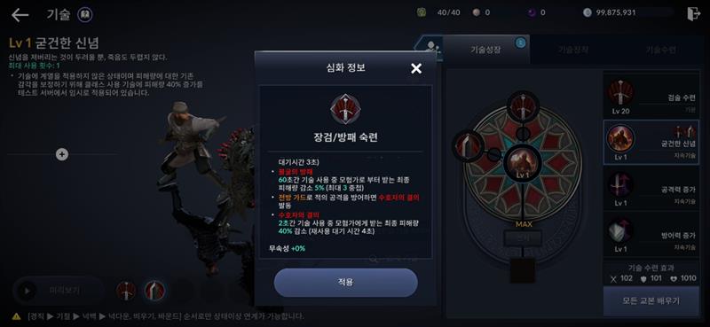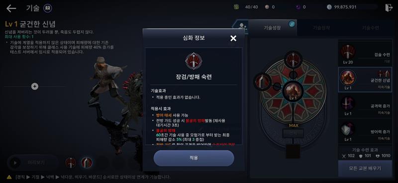 패시브에서 검,방을 선택시 방진을 주고