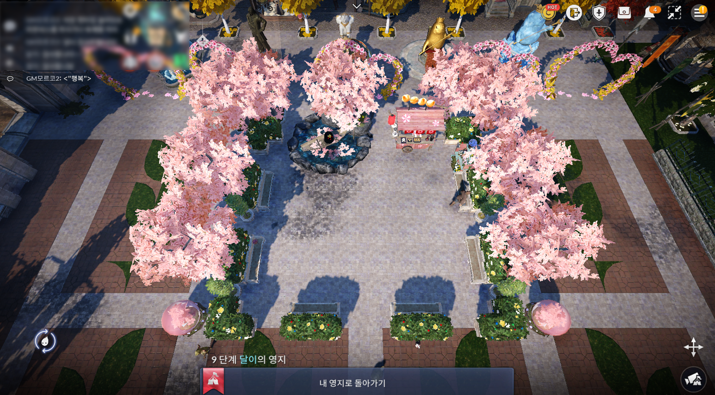 달이: 일단 영지 조경물 중에 '벚꽃나무'로 하트 모양 포토존을 만들어 둡니다. 그리고 "나머지를 하나하나 같이 꾸며보자~" 하면서 달콤하게 접근하는 거죠.