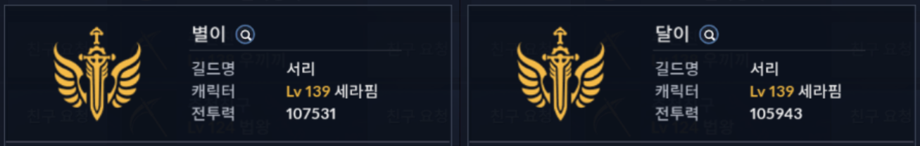 별이: 제가 자사나 숙제 콘텐츠는 더 악착같이 챙기는 편이고요! 강화 쪽은 제가 잘 몰라서 달이가 대신해 주는 편이에요 ㅎㅎ 근데 신기하게도 달이 캐릭터보다 제 캐릭터가 강화나 아이템을 훨씬 더 잘 먹더라고요! 💕