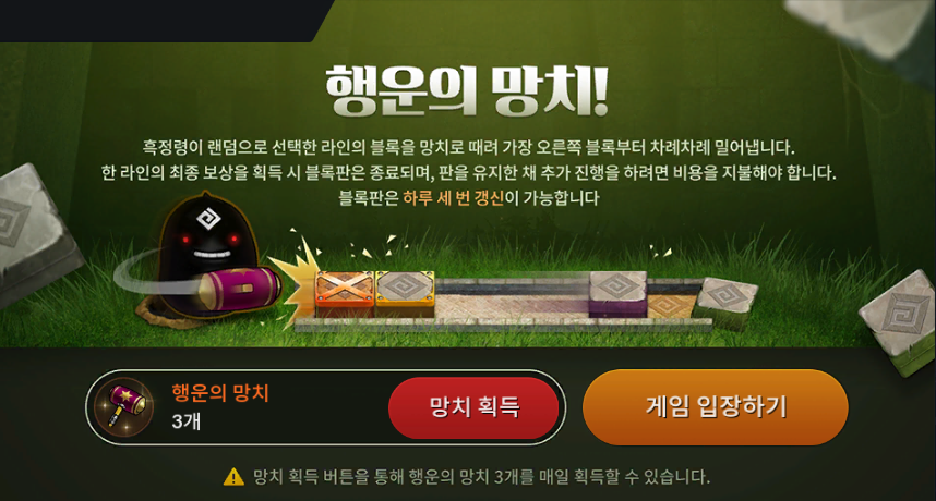 행운의 망치! (~4/7 09:00) 검은사막 모바일 2026-03-17 10:00 600 2026-03-17 10:00 600 -