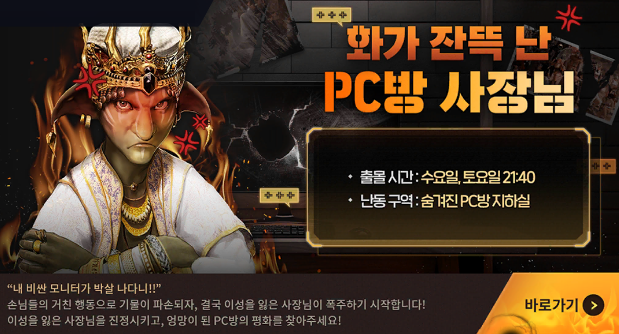 화가 잔뜩 난 PC방 사장님 (~4/11 21:50) 검은사막 모바일 2026-03-31 09:10 976 0 2026-03-31 09:10 976 0 -